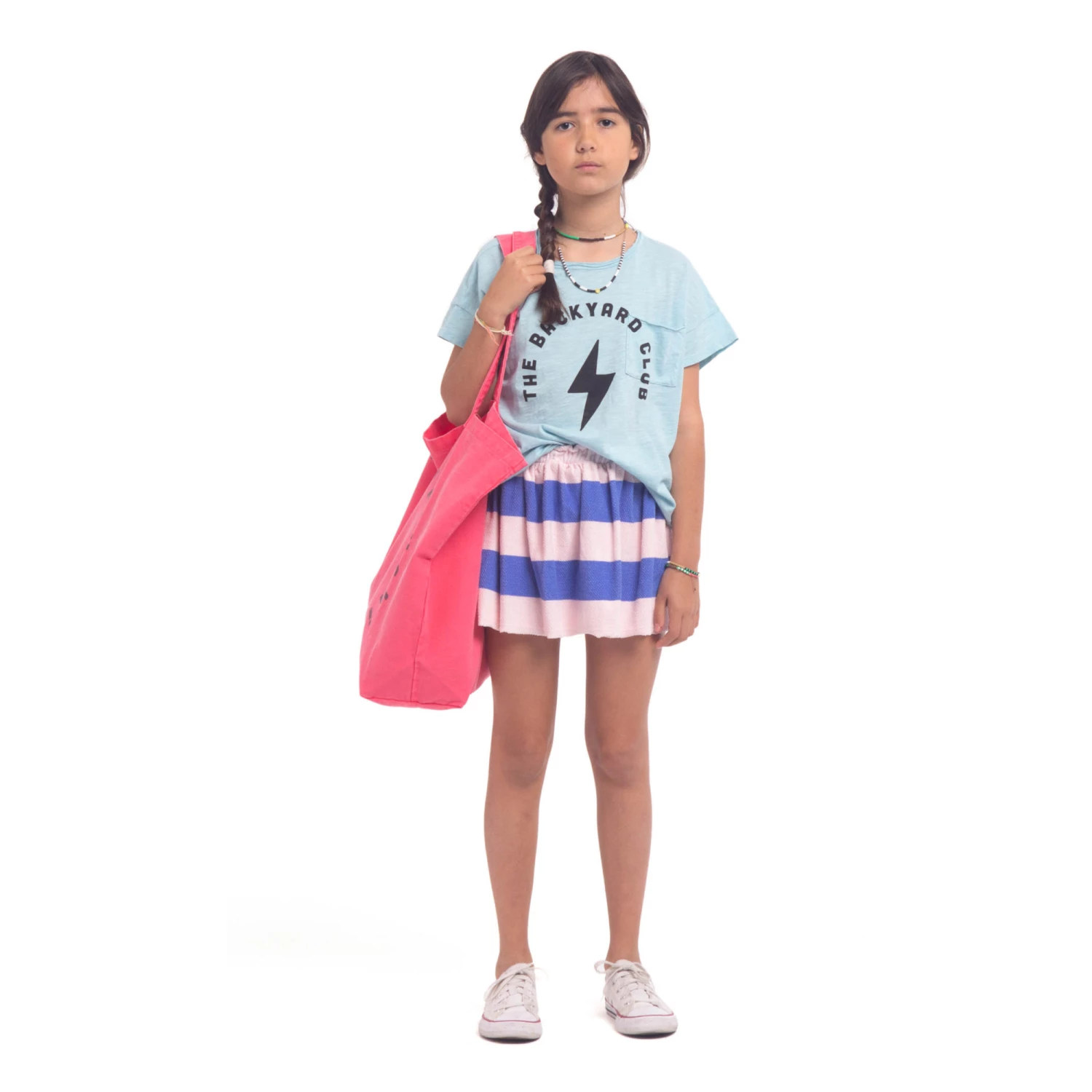 - Garment pulls on, Stripe print