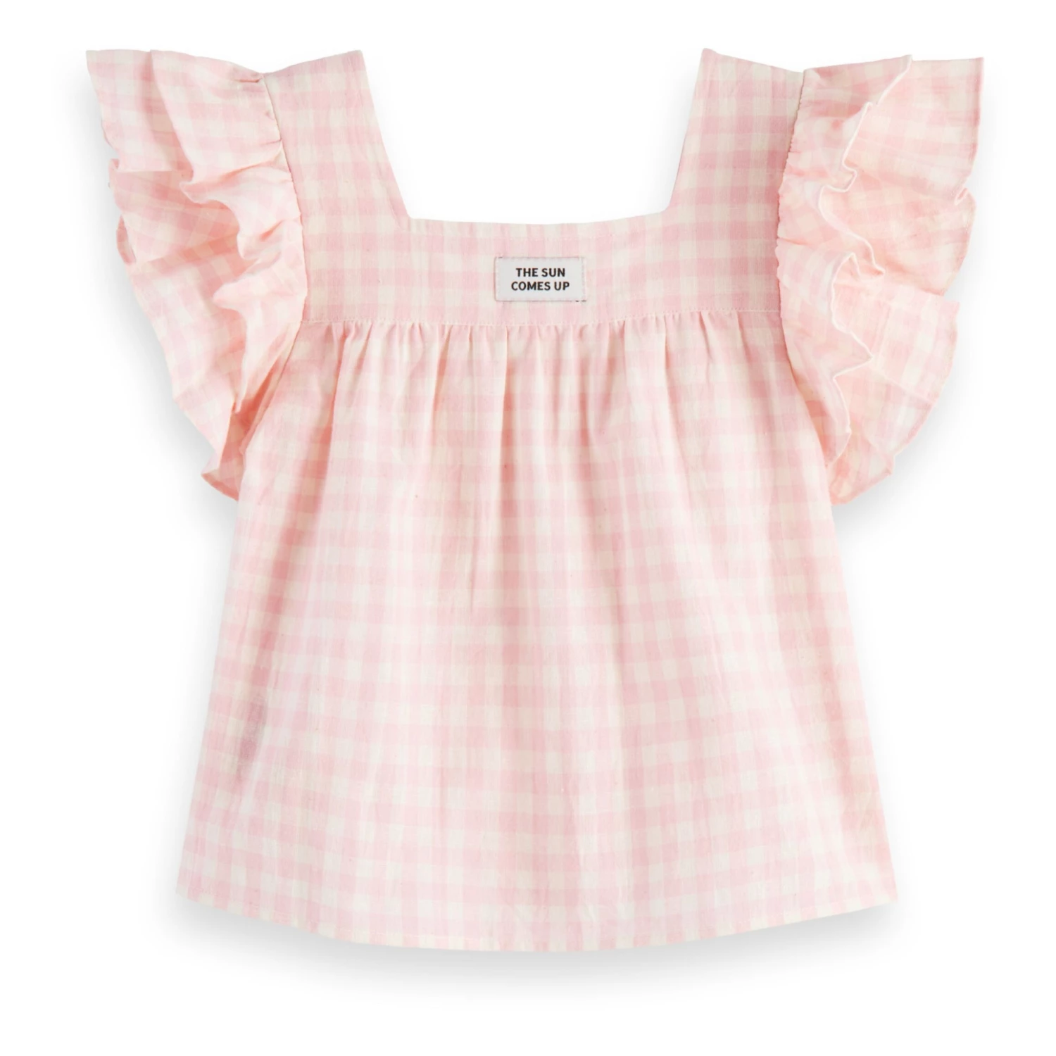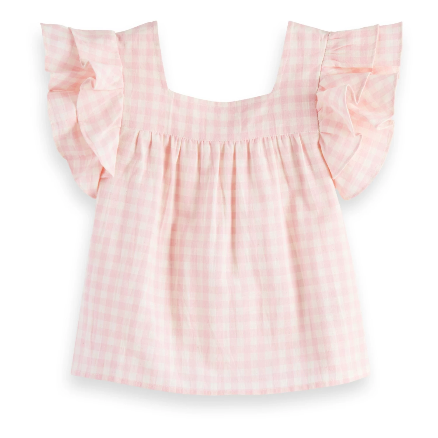 - Flounce sleeve, Gathered detail, Square neck, Lightweight and comfortable, Short sleeves, Sewn-in brand label