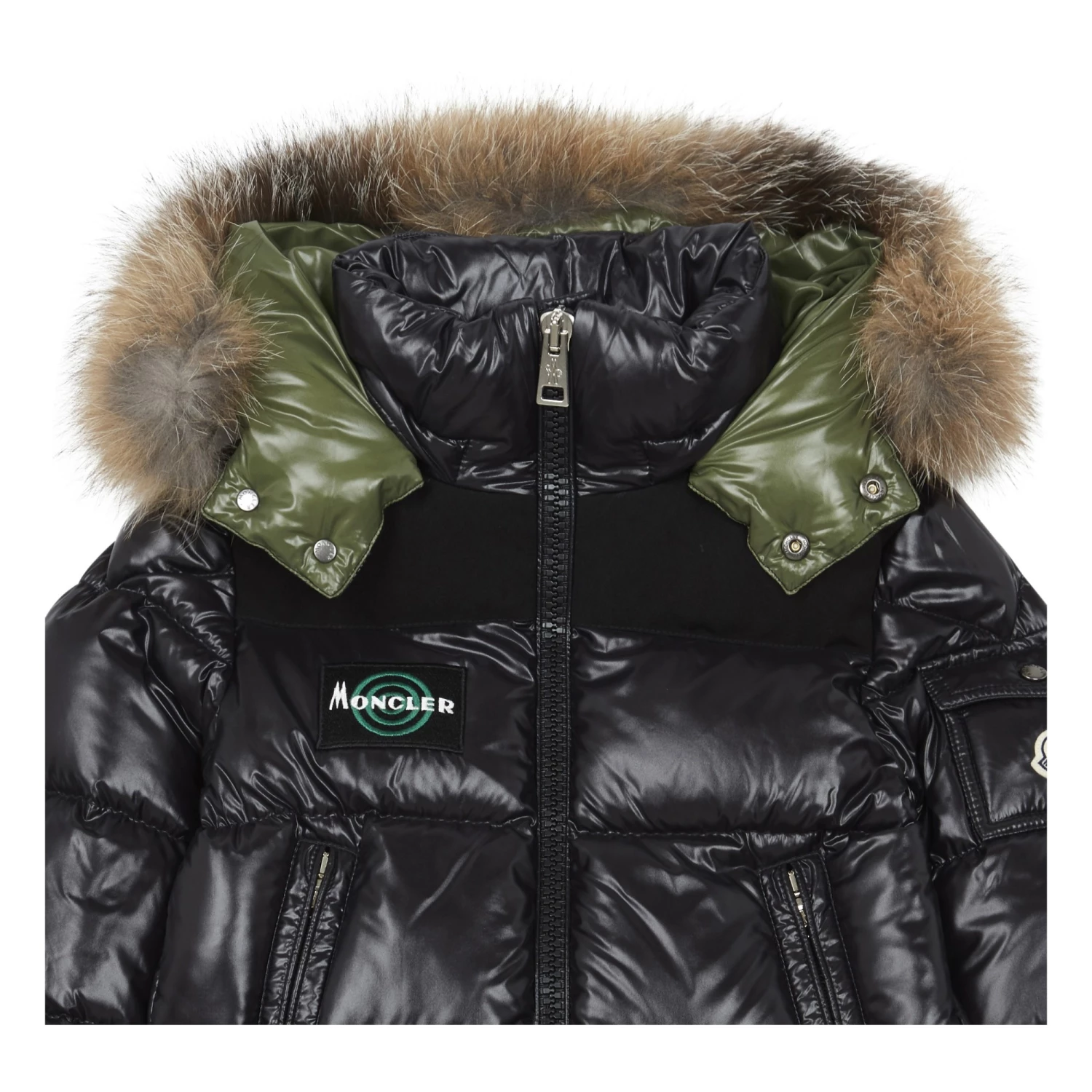 - Details : Two-tone, with Hood, High collar, Long sleeves, Zipper pockets, Popper pocket, Zip, Two materials, Removable hood, Removable fur, Product protected by digital ID code, Warm and comfortable, Buttons on ends of sleeves, Tightened at the wrist, Contrasted Logo